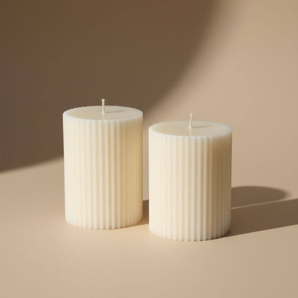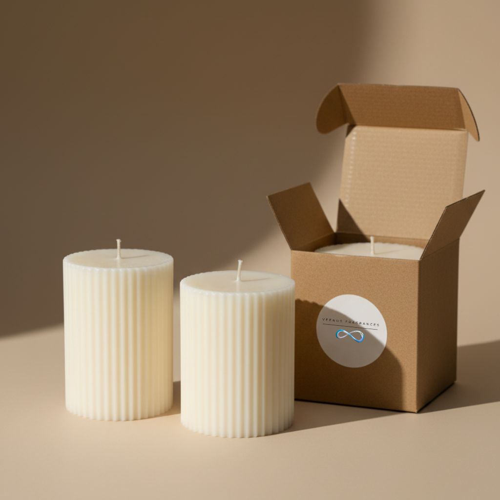 Elevate your ambience with the Veenus Fragrances Stripe Pillar Candle Set of 2— a beautiful blend of minimalist design and aromatic indulgence.